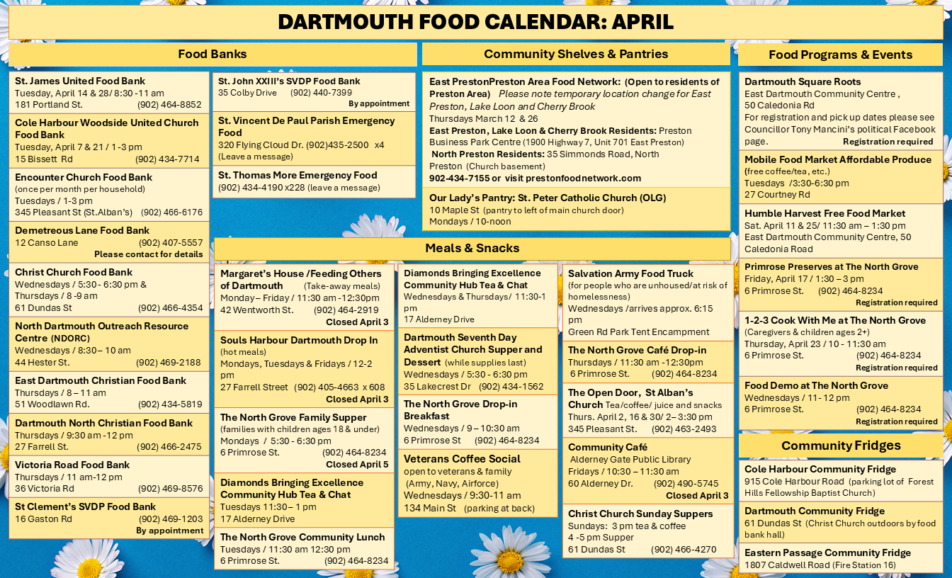 The North Grove (family and food centre) 6 Primrose Street, Unit 115, Dartmouth, NS, 902-464-8234 ext. 0